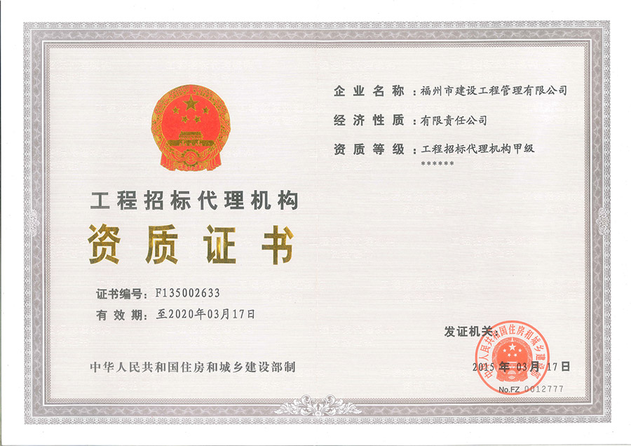 工程招標(biāo)代理機(jī)構(gòu)資質(zhì)證書(shū)